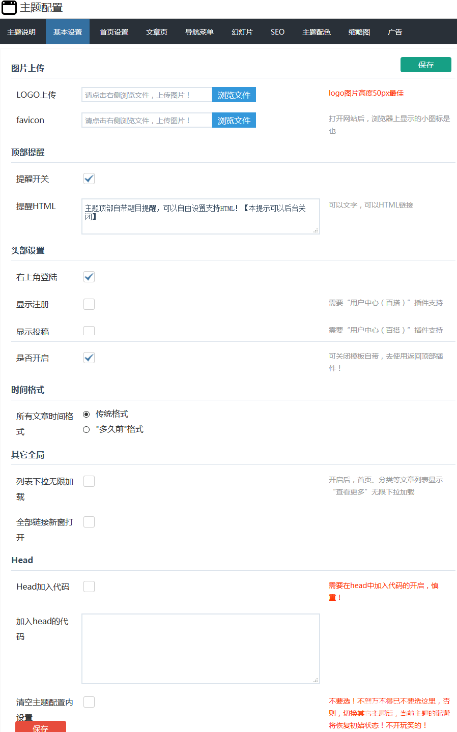 后台主题配置截图: