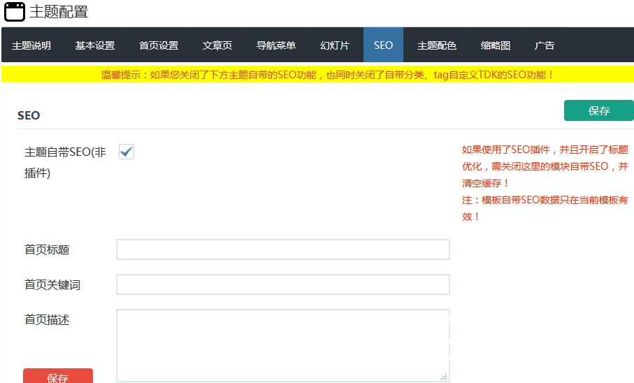 1、首页标题、关键词、描述都可以主题配置内自定义。