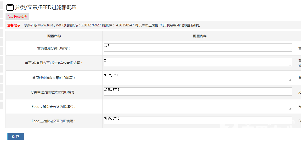 可以过滤首页列表页的分类/文章/FEED过滤器
