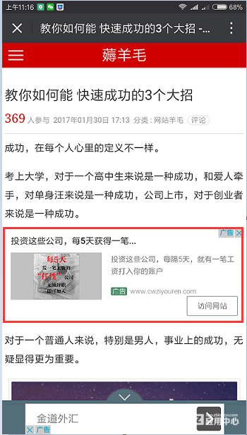 原生广告相比其他广告,点击率更高,展示率更高,文章中间,更美观!