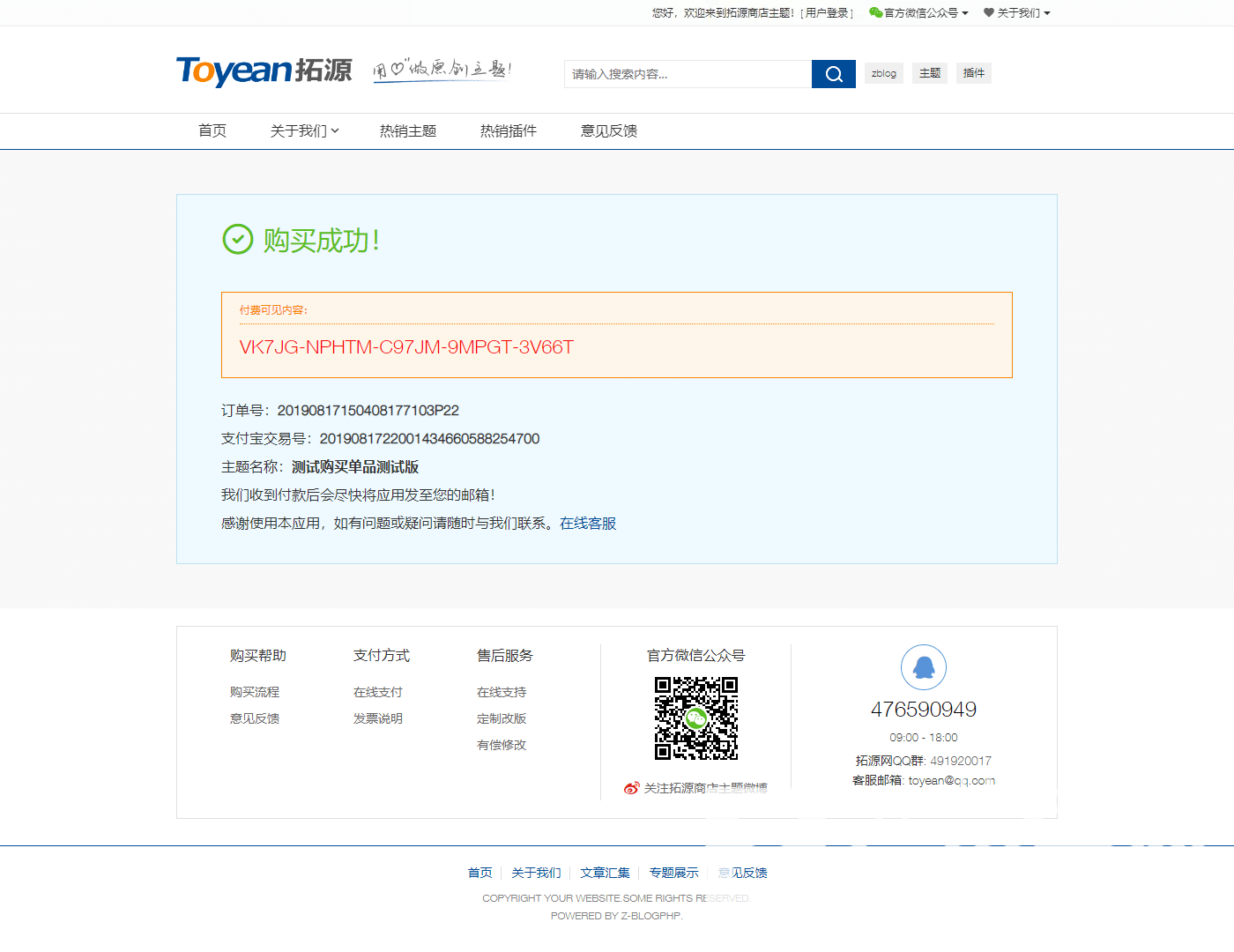 2. 如已购买收费应用无法正常下载,请在自己网站后台检查Z-Blog及应用更新,如均已更新至最新版本仍无法下载请及时与我们联系。