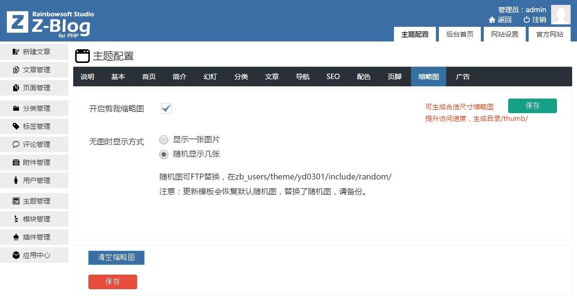 3、缩略图:主题内置自动剪裁生成实体缩略图,访问速度大大提升,可开启也可关闭!