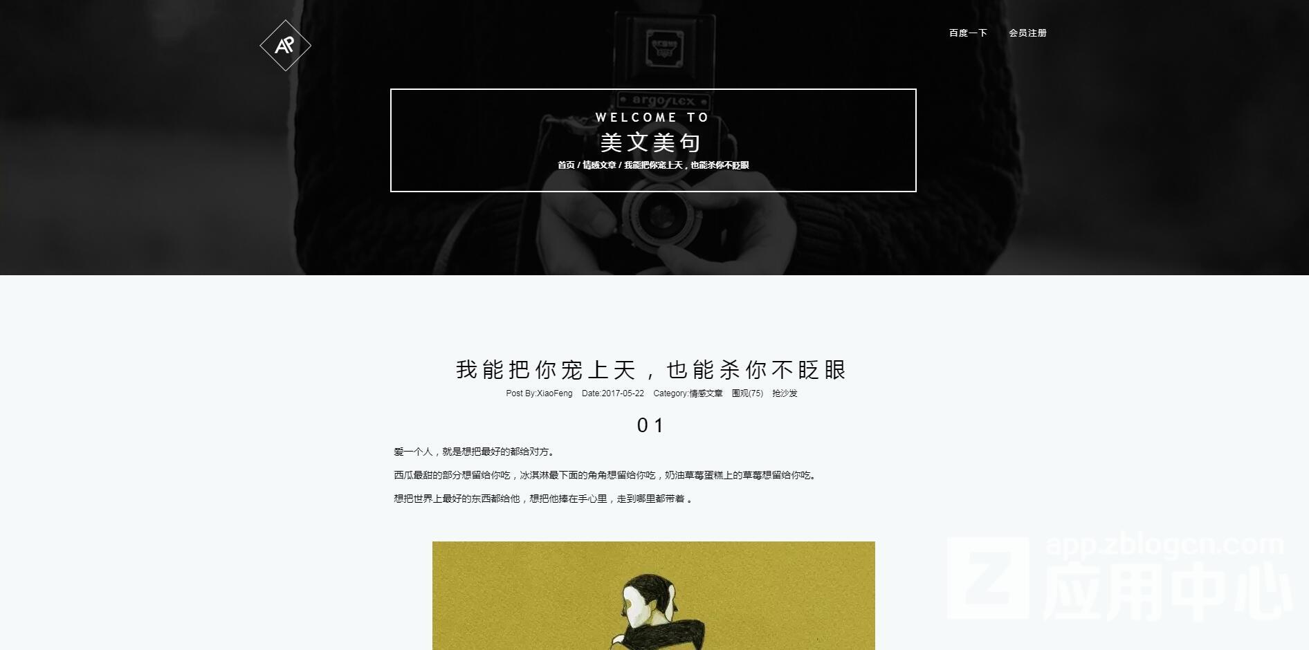 本主题为单栏大图,非常简洁,具有完善的SEO功能,并且完美适应电脑、手机、iPad等各种像素的设备,适合个人博客、摄影等建站使用。