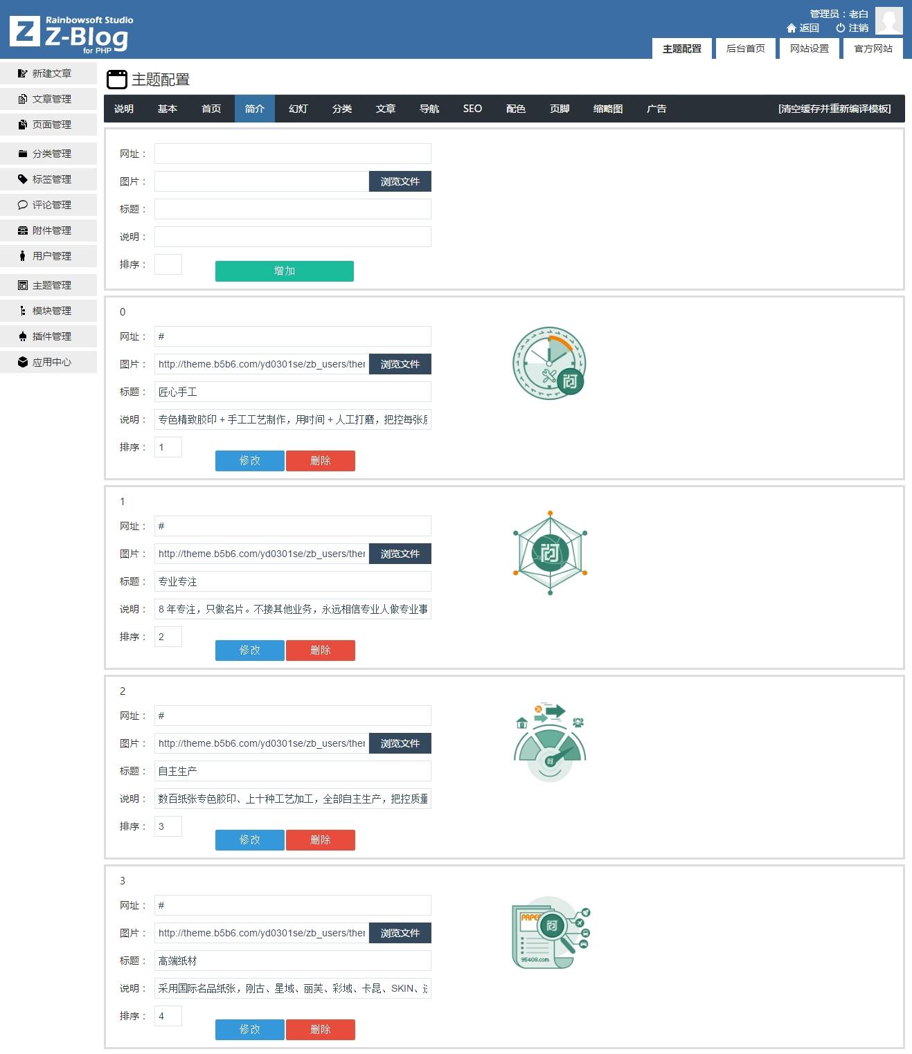 2、修复:主题配置 - 幻灯片、简介,添加修改删除时返回问题。