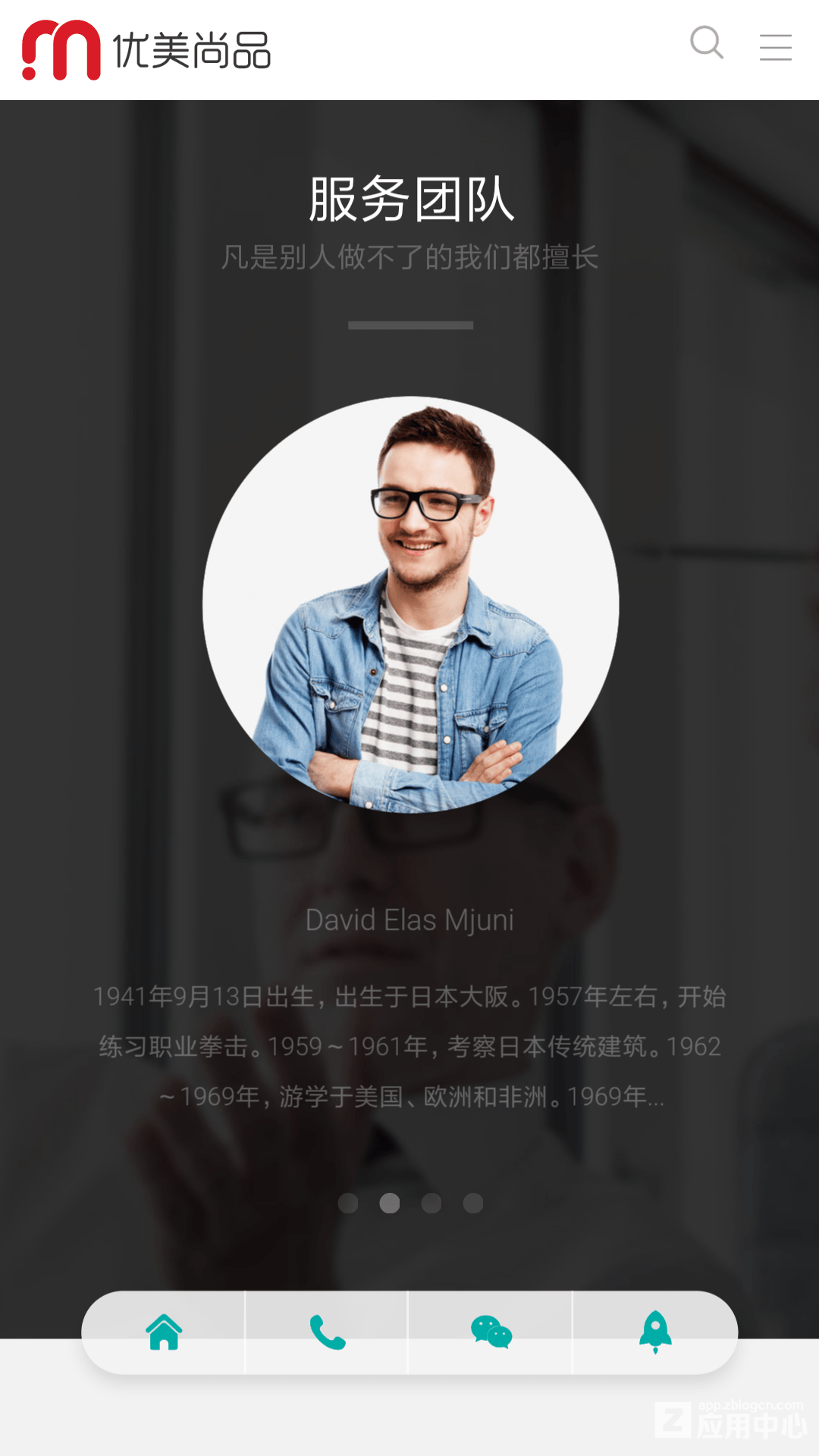 1,调整首页服务团队模块代码及样式,并增加一排4个,上图下文字模式;