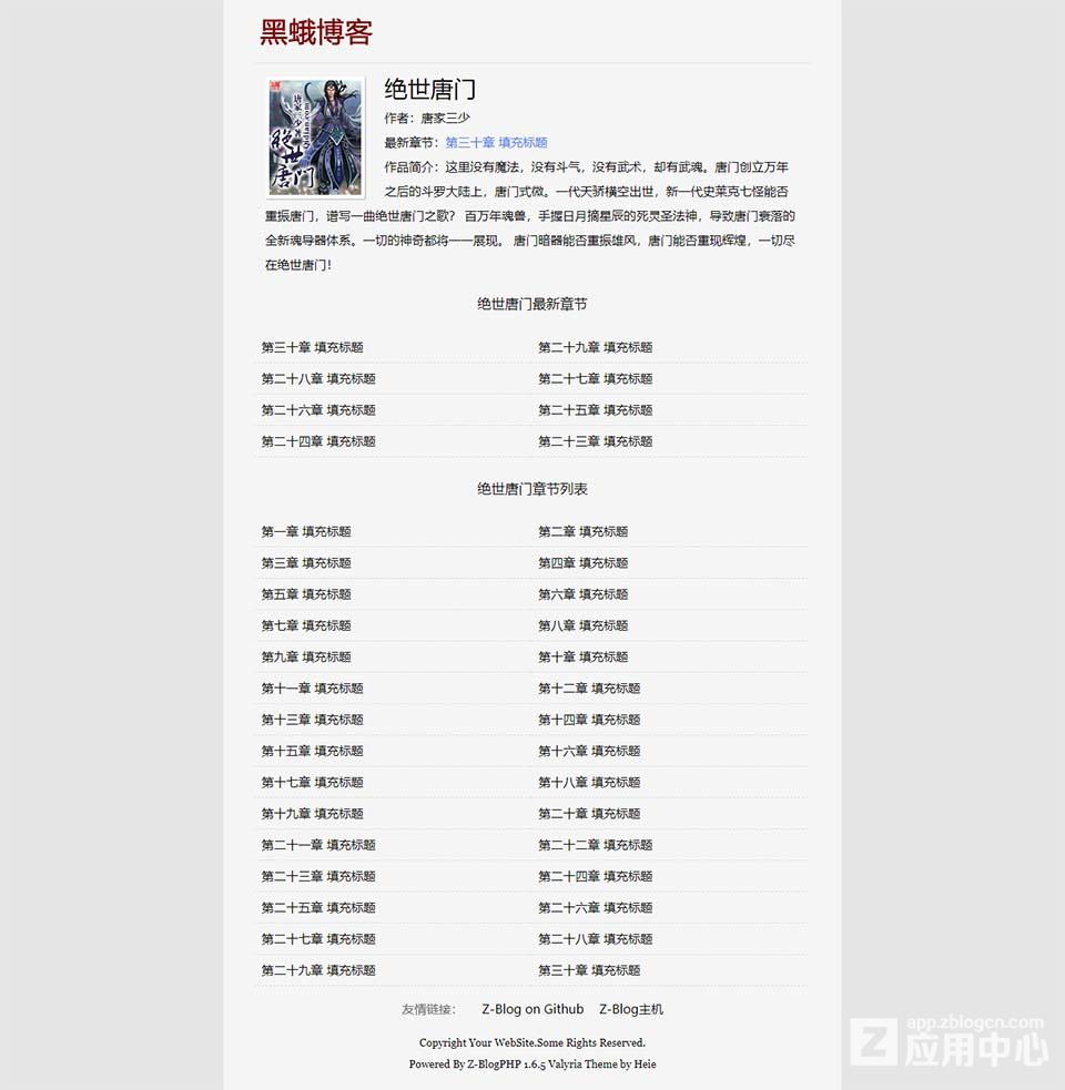 使用Z-blog程序搭建单本或多本小说网站,适合网文小说作者推广自己的作品使用,模板简洁自适应电脑端和手机端,后台一键切换单本/多本模式。