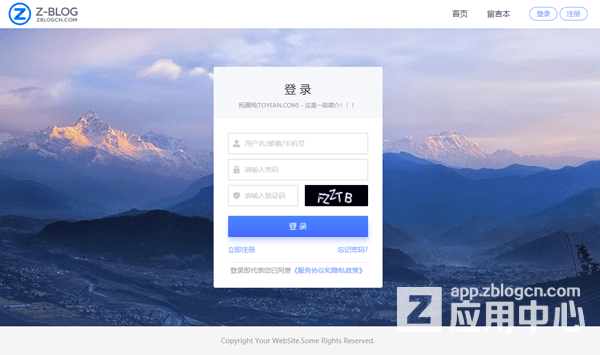 1. 购买者在自己的Z-Blog网站登录,进入后台,在左侧菜单栏点击“应用中心”菜单。