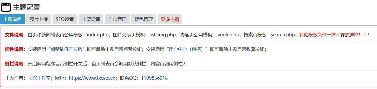 6、方便的主题后台管理;