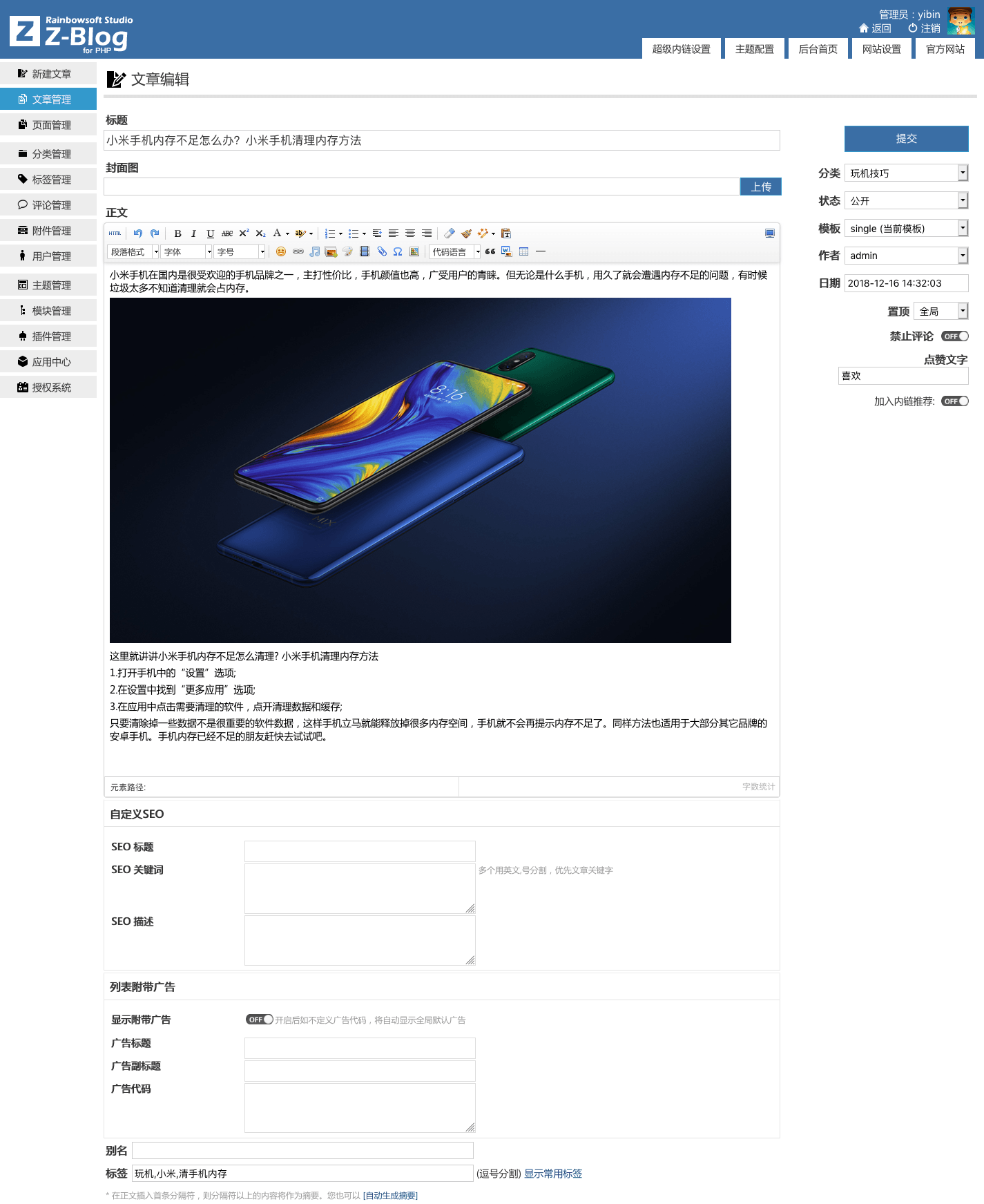 08,支持每篇文字可附带广告位并跟随在首页及列表页展示;