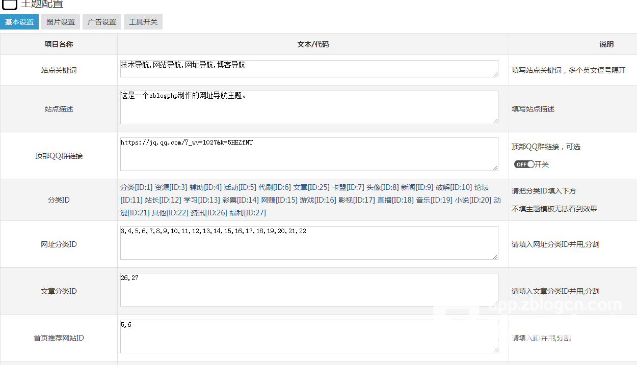 下载好主题后请首先修改分类模板和详情页模板,分类id请到主题配置里填写,否则网站排版错乱。