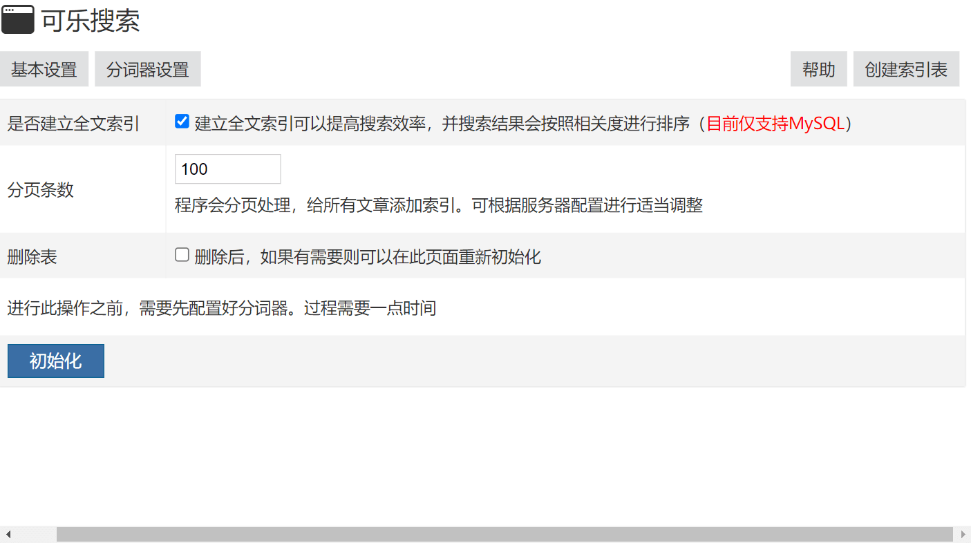 1.0.9. 修复保存基本设置时,更新“是否建立全文索引”选项的bug