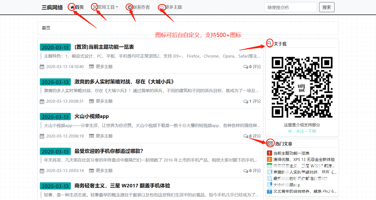 6、符合W3C设计规范、优秀的SEO优化、面包屑导航、关键字、描述自动获取; 页面、文章支持