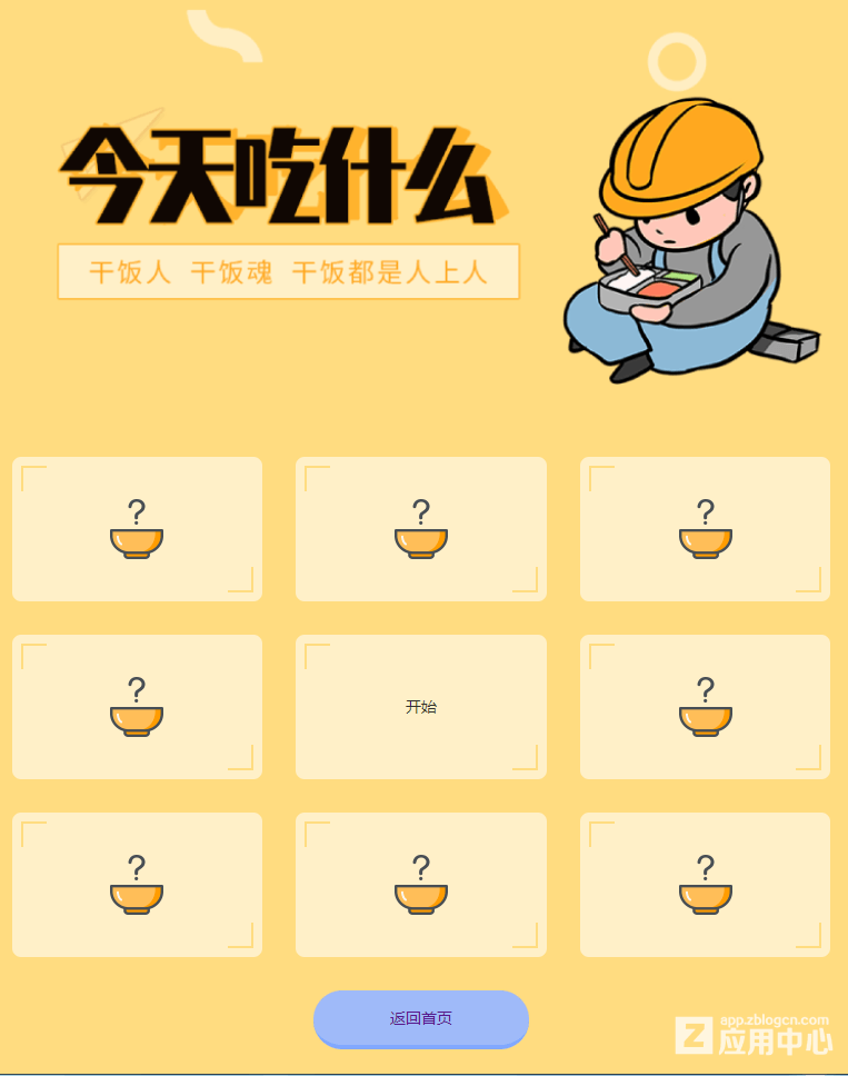 每当到饭点的时候不知道吃什么的时候,可以用这个页面当做引流,随机推荐食品,再也不用为今天吃什么发愁了。