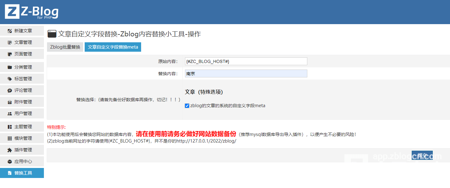 全新zblog替换工具:文章(包括文章的自定义字段)、标签、分类、评论 随你替换,后期可能会加其他替换。