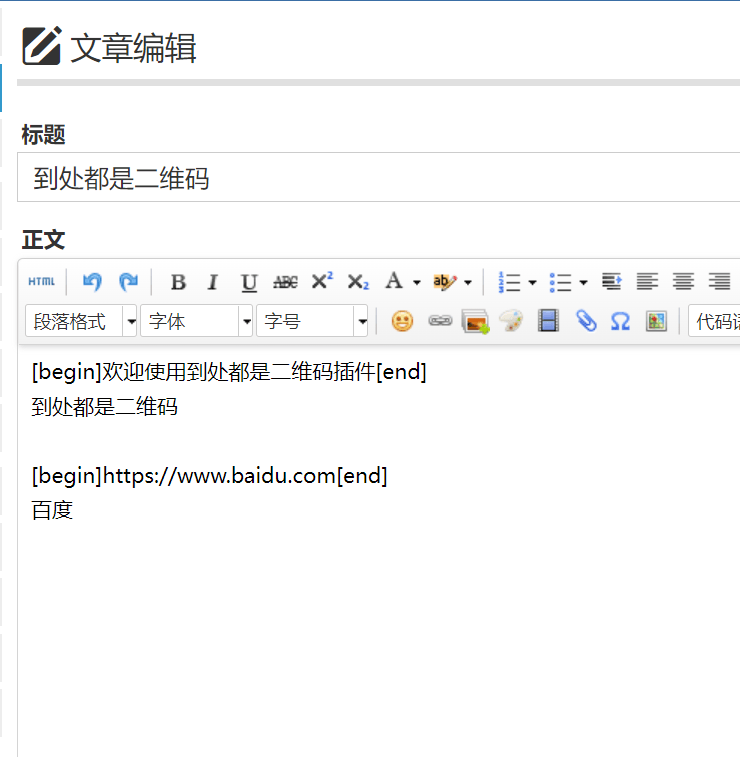将内容使用特殊符号包裹,即可实现二维码展示。