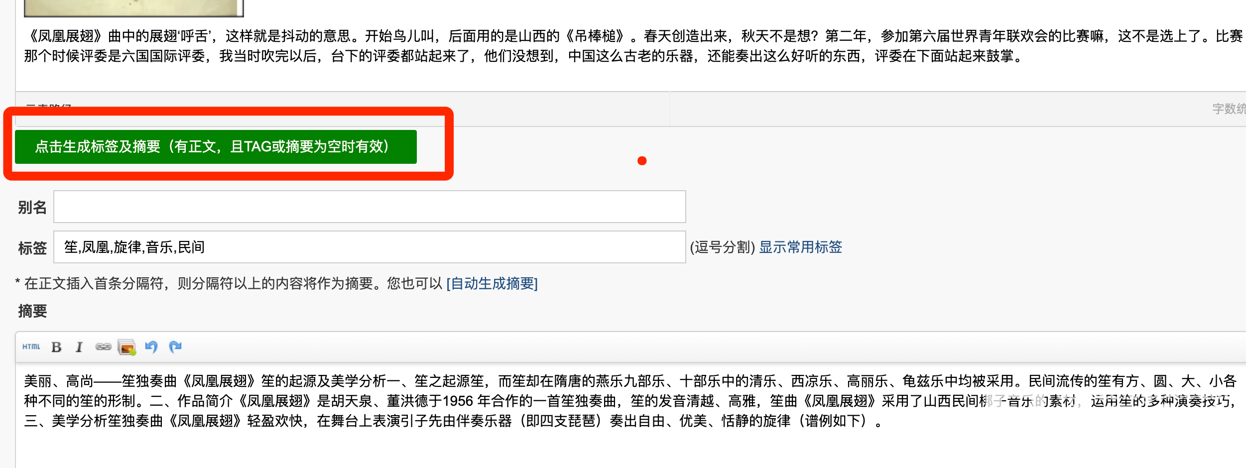 另一种是提交文章时自动生成,只需确保标签、摘要为空即可,哪个为空就生成哪个,这个适合采集站长,文章批量采集入库时可自动完成标签、摘要的生成。