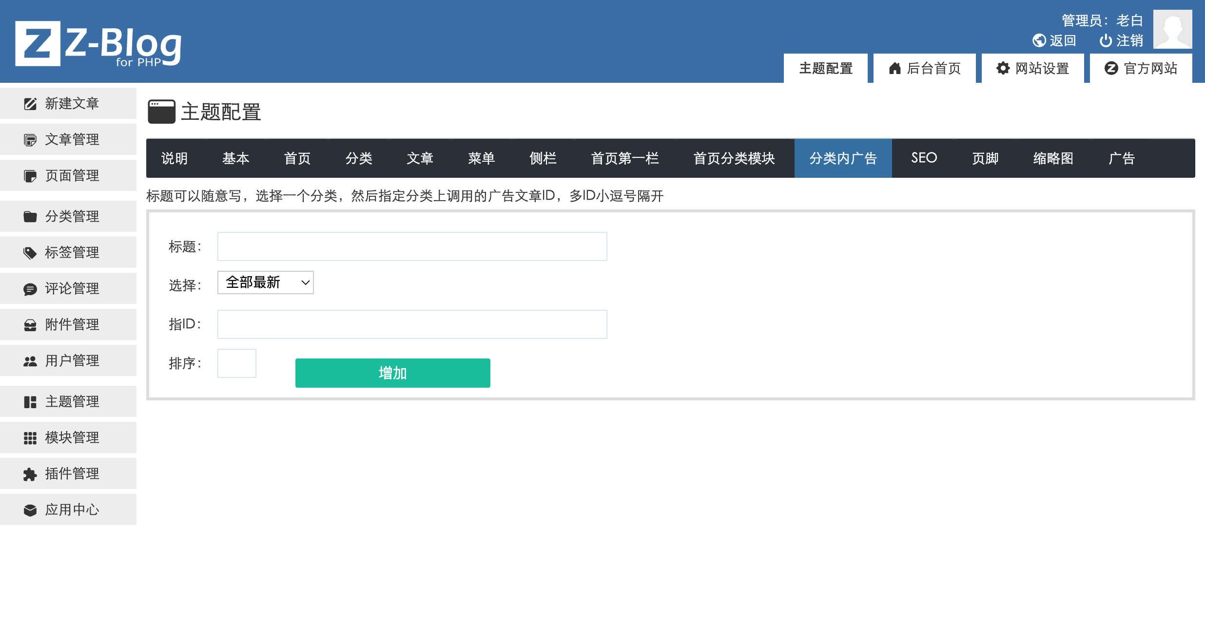 2、分类样式:在主题配置 - 分类中,可以直接为所有分类选择模板选择样式,内置了普通文章列表和图片展示样式