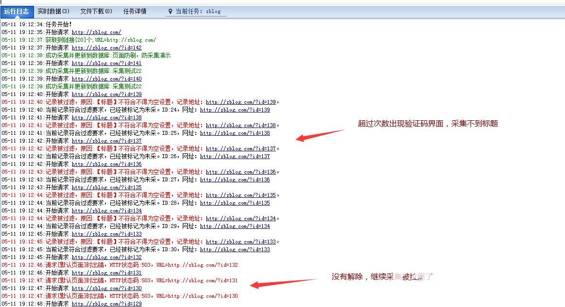 页面遭到请求频繁,会自动显示验证码,需要验证解除后才可继续访问,如果还在验证码界面有频繁访问,将会ip拉黑1天,显示503拒绝服务。 用于防止频繁刷新,防止采集!