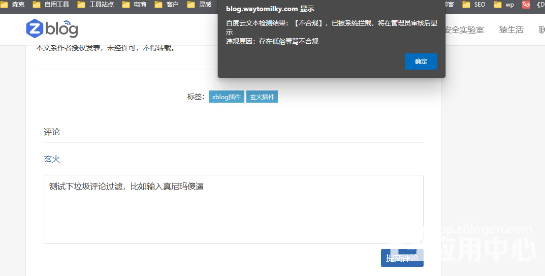 例如评论拦截提示: