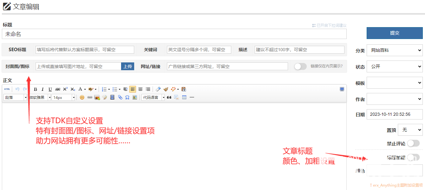 文章特有封面图/图标、网址/链接设置项,轻松实现添加网址导航和广告推广;