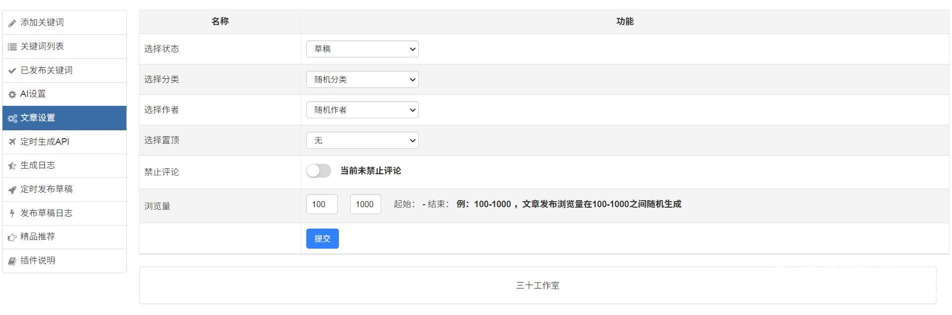 生成的文章可直接设为公开或保存为草稿。