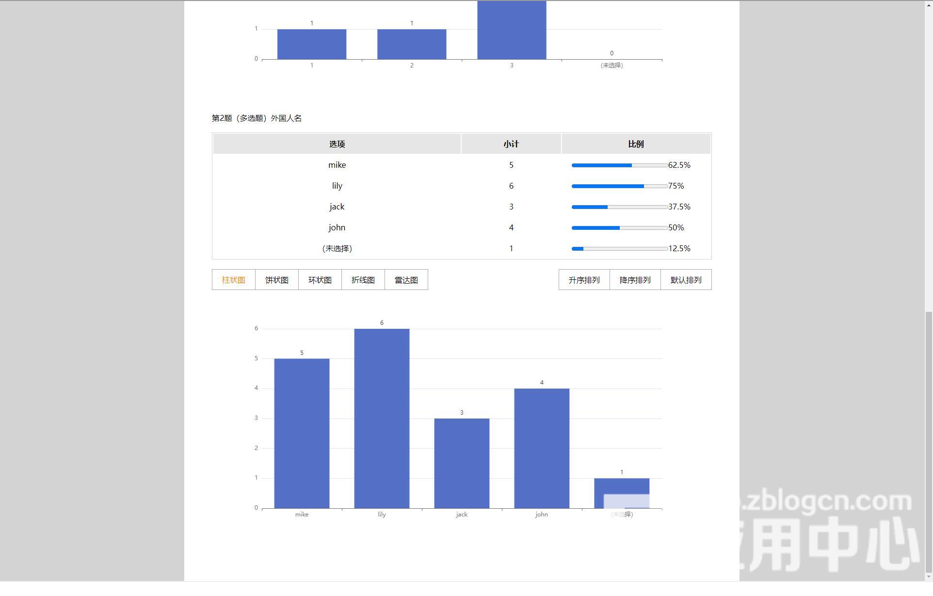 后台显示的统计卷和导出的统计结果用echarts图表显示(柱状图,饼状图,环状图,折线图,雷达图)