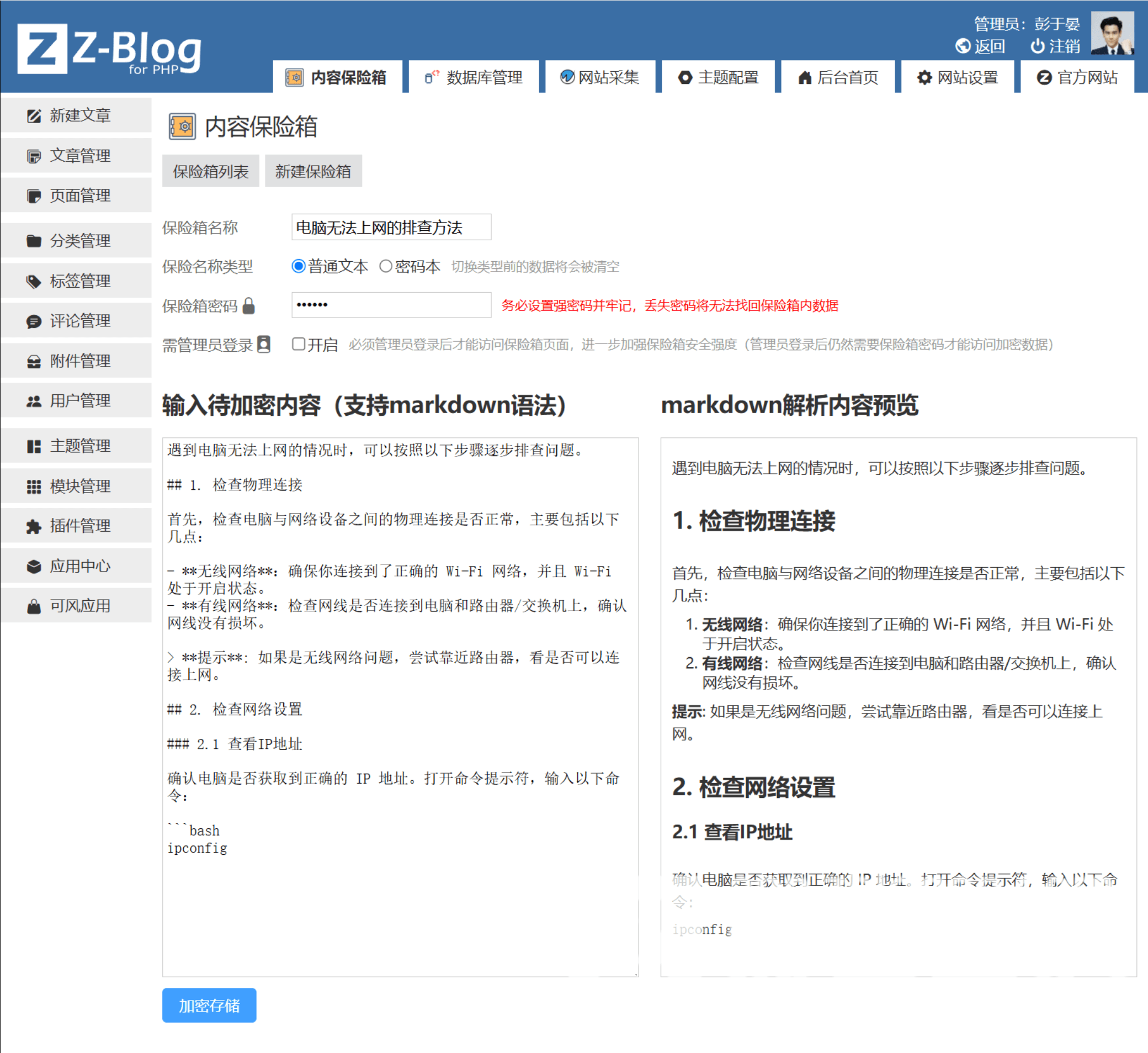 保险箱内容编辑-普通文章加密