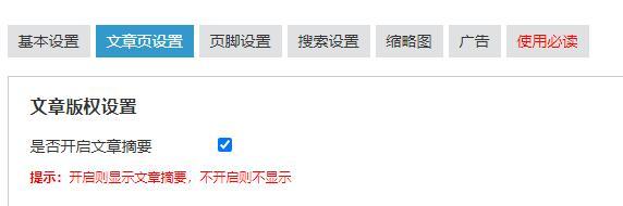 1)应用户要求增加文章页文章摘要开关,开启则显示文章摘要,不开启则不显示