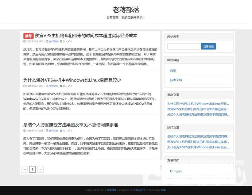 来自老蒋部落的一款基于BOOTSTRAP框架的两栏简单博客主题。