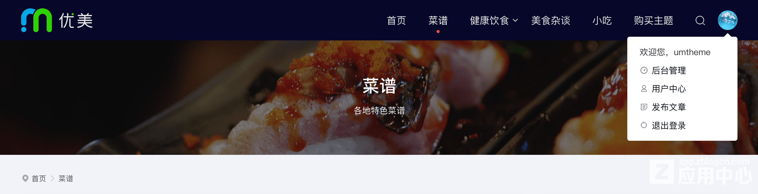 带操作教程演示地址:http://food.umtheme.com/caipu/1.html